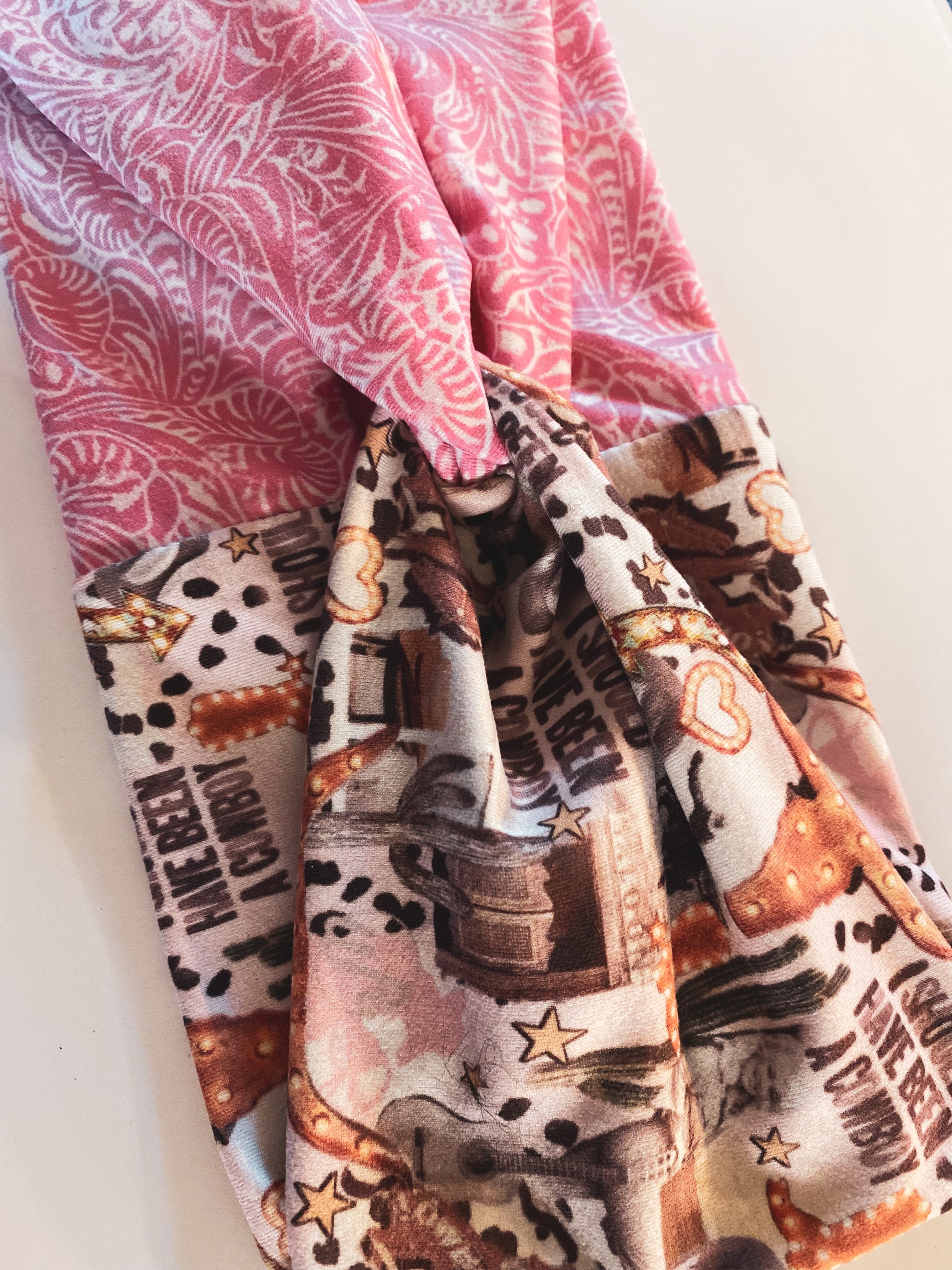"Custom print" = The print is either designed by, "The Wyoming Rose" or by another small business graphic designer. It's then special custom ordered onto the top quality fabric! The designs are then specially ordered to be printed onto top-quality fabric.